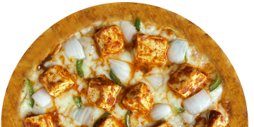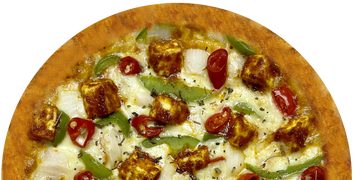Spicy paneer with mixed herbs, onion, capsicum, red paprika and delicious mozzarella and cheddar cheese